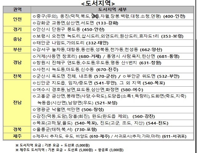-제주도추가 :3000원